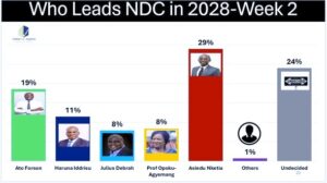 The poll also found 24% of respondents undecided, down from 36% in Week 1, when Asiedu Nketia was at 28%. The shift suggests other contenders are consolidating support as the field remains fluid.