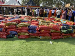 The presentation ceremony was part of a colorful event where 5,000 vulnerables received food stuffs ahead of the festive season.